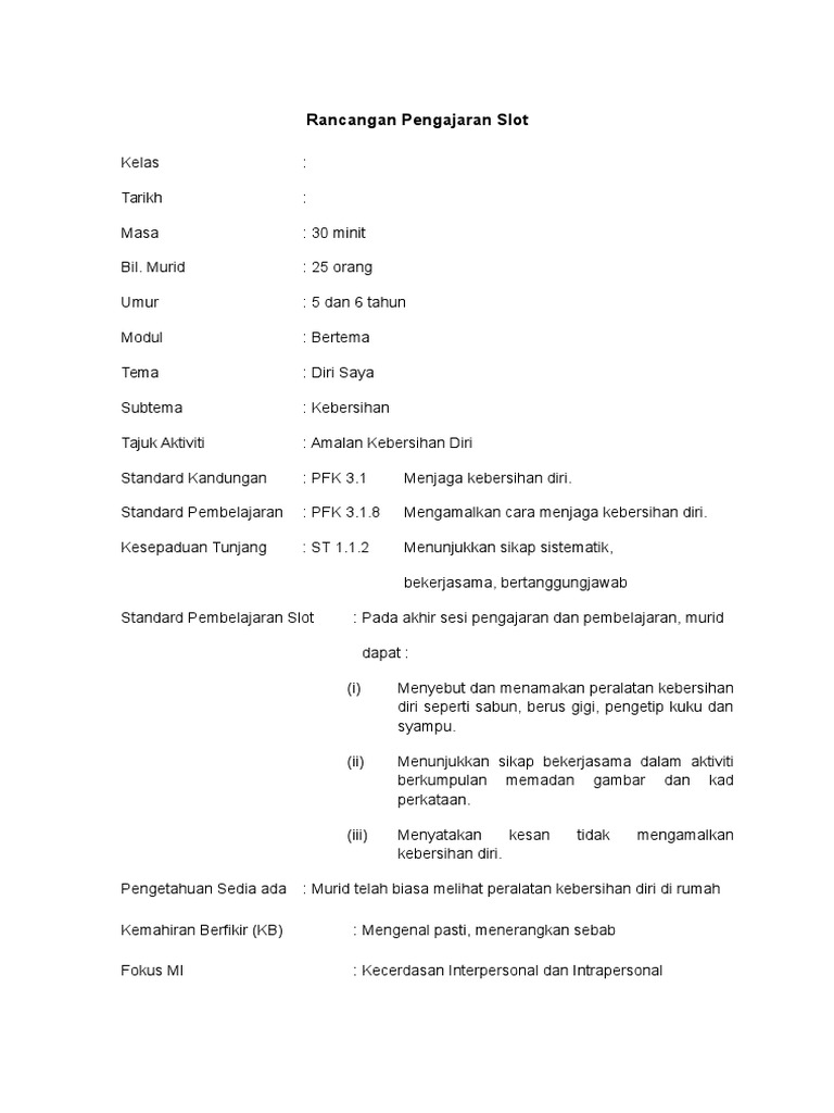 Rancangan Pengajaran Slot Kebersihan Diri Pdf